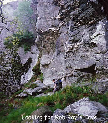 Among these rocks Rob Roy's Cave is located. Here the track takes a steep and torturous route. |