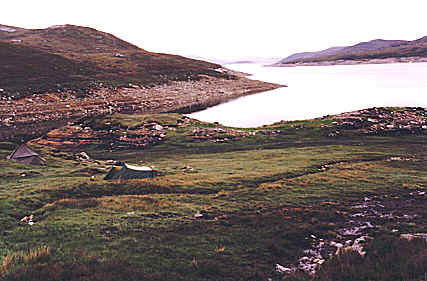 camp a grassy slope led down to the Orrin reservoir. We were opposite to